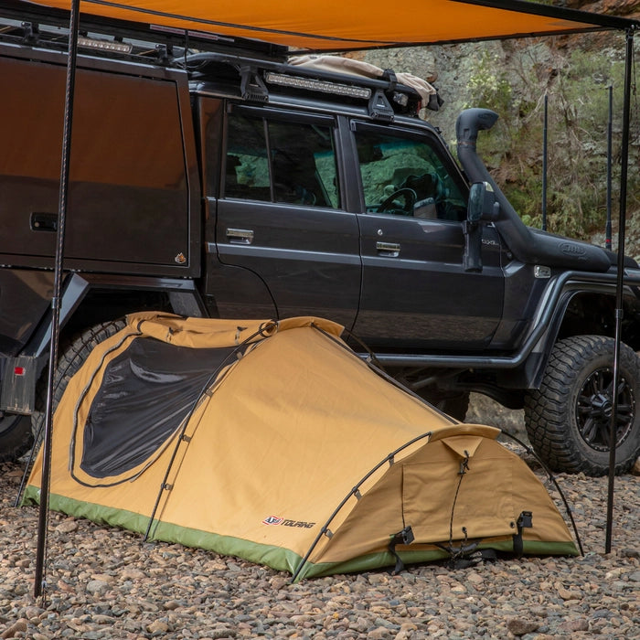The heavy-duty steel frame supports up to 150kg, ensuring stability and safety throughout the night. The built-in hooks keep your swag securely attached to the stretcher, so you can sleep with peace of mind, knowing you’re protected from the elements and unwanted critters.