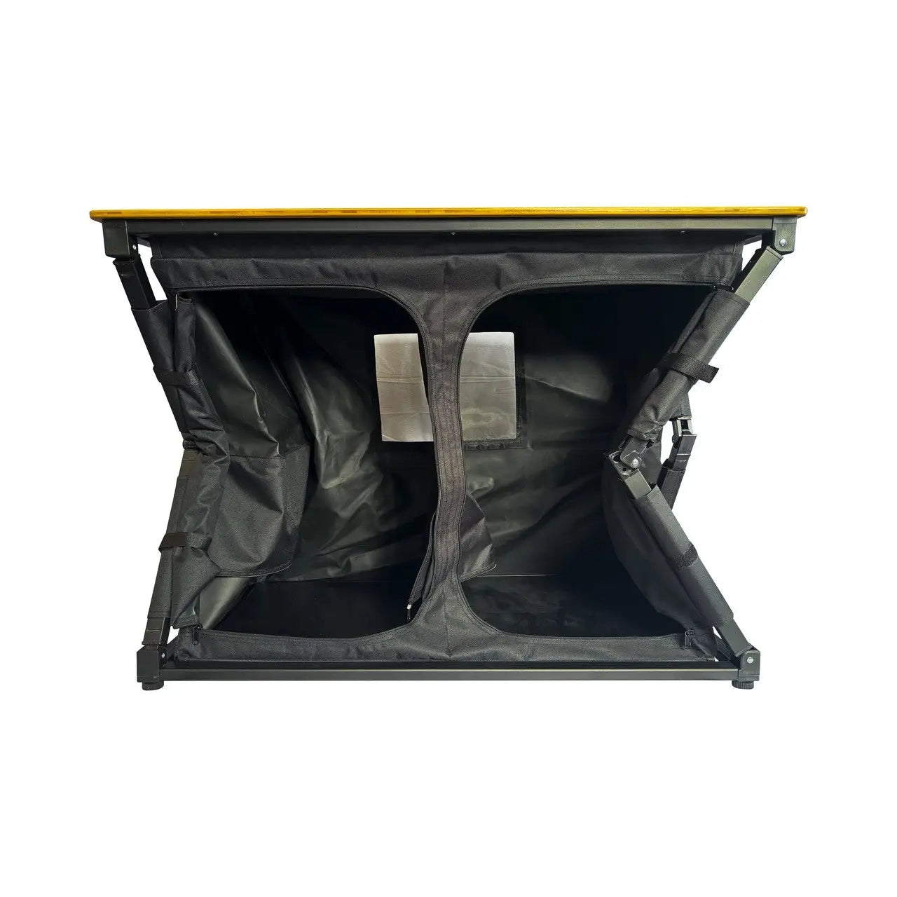What makes the Deluxe Camp Kitchen so great is, it's compact and easy-to-assemble design. Simply open and unfold in seconds, ready for you to fill with all your cooking essentials, ensuring a tidy and easily accessible space for all.